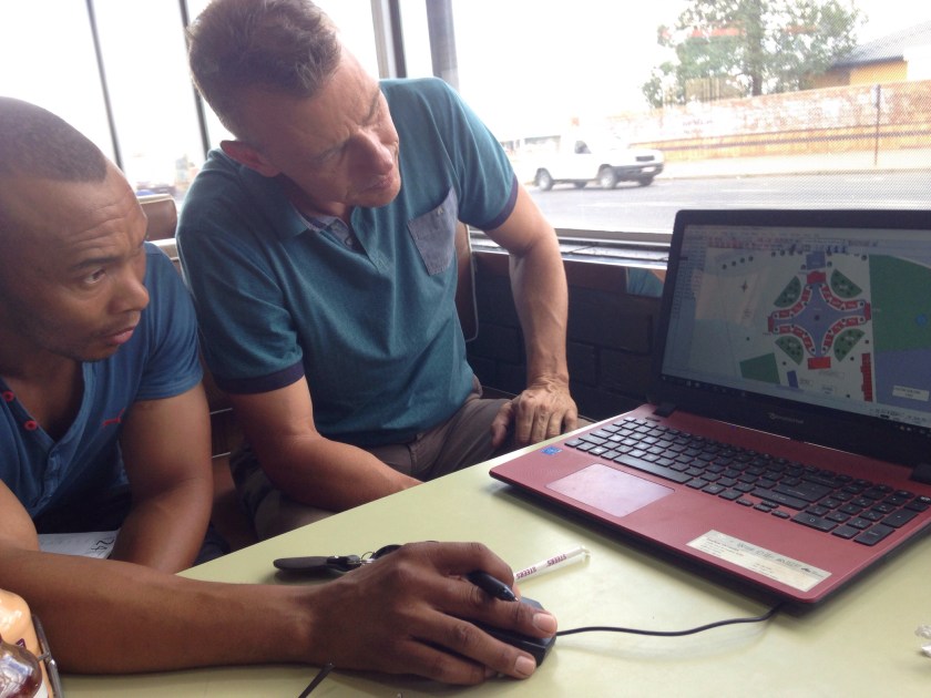The two busses into Vryburg each day stop at Steers, a South African burger chain. Claire met me at the bus and then we went into Steers where she and her husband were meeting with their architect. On the computer screen was a property map with the layout for a school with over 400 students. Claire’s school is less than a year old and already has over 120 students.