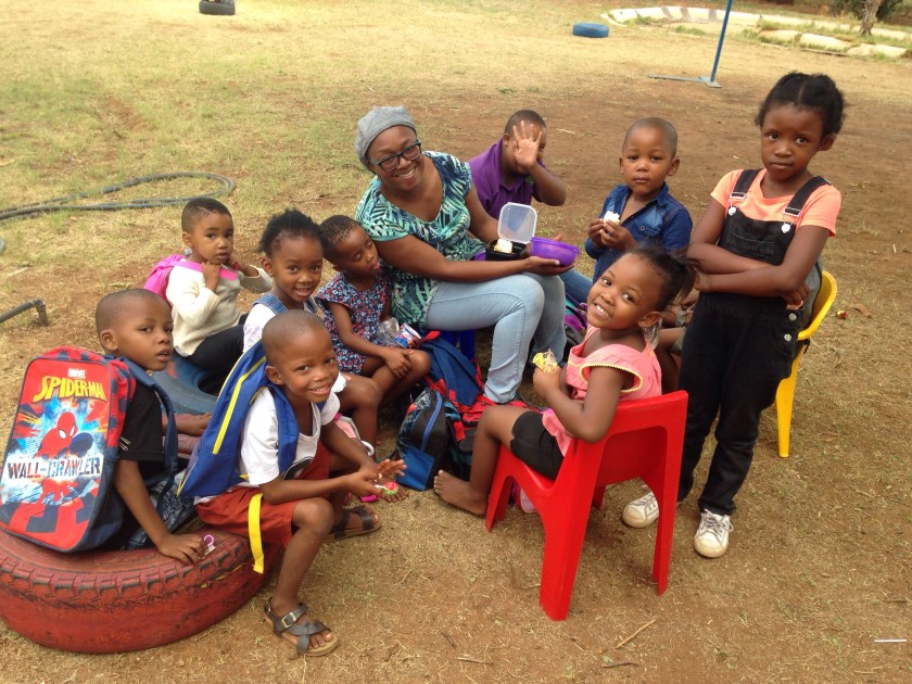 The school day ends at 12:30 and the after care program begins at 1:00. I help serve lunch, assist the grade 2-5 students during the homework period, and then play in the yard until pick up time at 5:00. There is a insistent stream of ‘sir, sir’ directed at me during the homework period as students ask for help and vie for my attention. Two confident fourth grade girls, Tshepiso and Obelong, befriended me yesterday. They wanted to know about the United States and told me to bring them there the next time I came.