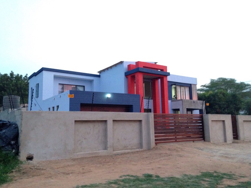 In the late morning, we headed off to Zwelisha. This is part of another sprawling collection of townships on tribal land. The local family I am staying with seems to be one of the wealthiest around. Their home has two stories, marble floors, fancy shower fixtures, and an electric fence atop the surrounding wall. It is still being constructed so it also has no sinks, no kitchen counters, and only two chairs. Two brothers live there, one is an attorney and the other rescues bankrupt municipalities, so not your typical township family.