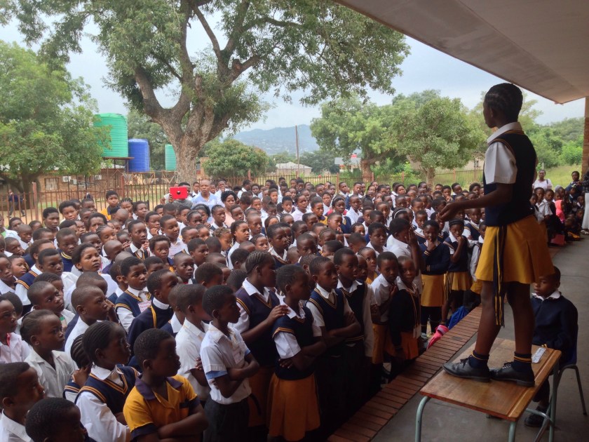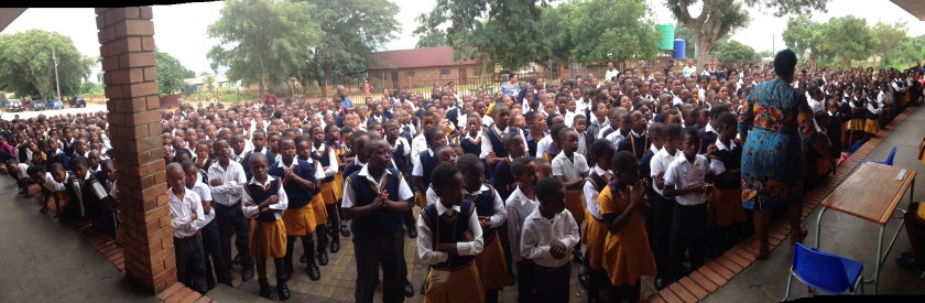 A few students did a presentation about the fight to end apartheid and Mandela. One girl acted out someone shouting abuses in Afrikaans at black students. As the one white person amongst the 1200+ people there, I wondered to what degree I was associated with that abuse in their minds. The principal explained the significance of the Sharpeville Massacre and, to close the assembly, led them in The Lord’s Prayer.